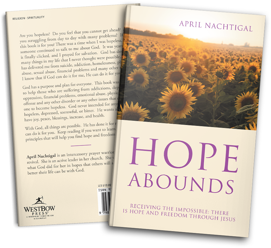 Are you hopeless? Do you feel that you cannot get ahead? Are you struggling from day to day with many problems? If so, this book is for you! There was a time when I was hopeless, and someone continued to talk to me about God. It was years but it finally clicked, and I prayed for salvation. God has done so many things in my life that I never thought were possible. God has delivered me from suicide, addiction, homelessness, physical abuse, sexual abuse, financial problems and many other things. I know that if God can do it for me, He can do it for you.